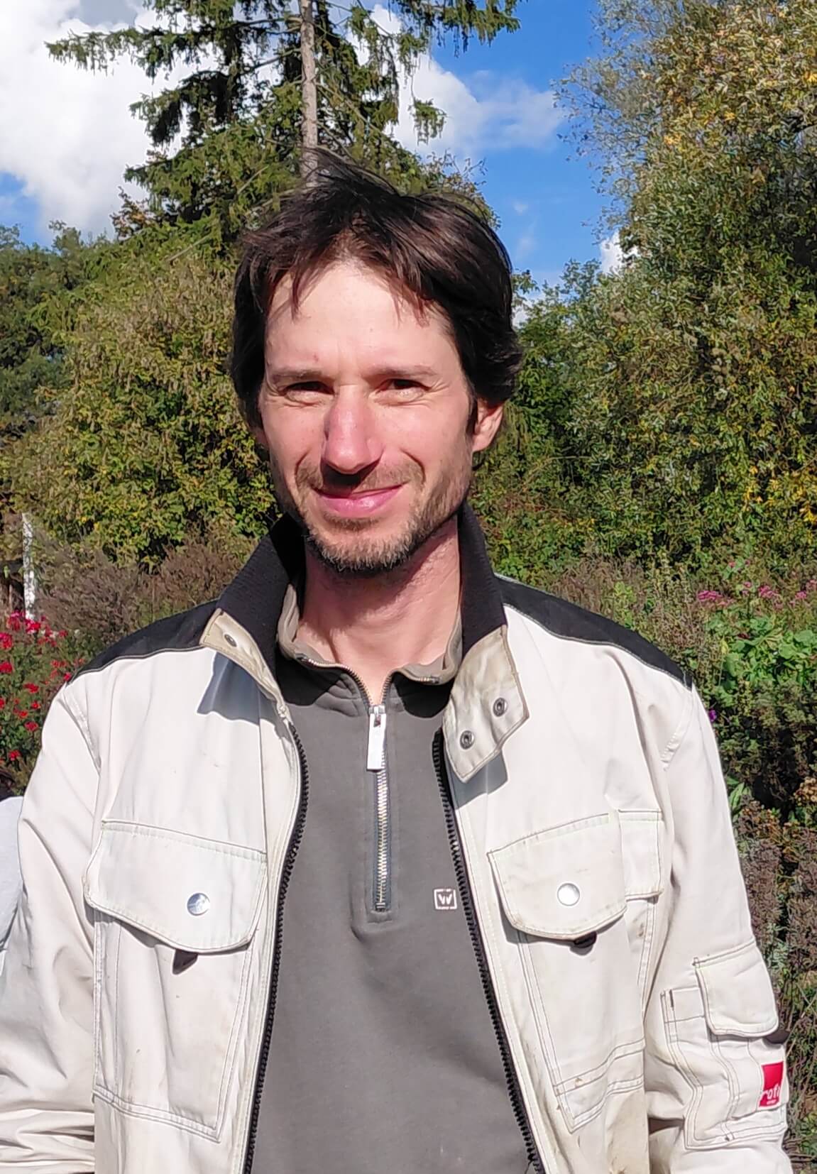 Seine berufliche Ausbildung und Erfahrung sind bei der Wartung der Maschinen und bei verschiedenen Umbauten hilfreich. Das Wissen um den Acker- und Gemüsebau und die Dammkultur hat er durch Selbststudium und Seminare erworben. Er arbeitet auch gerne in der Backstube mit.