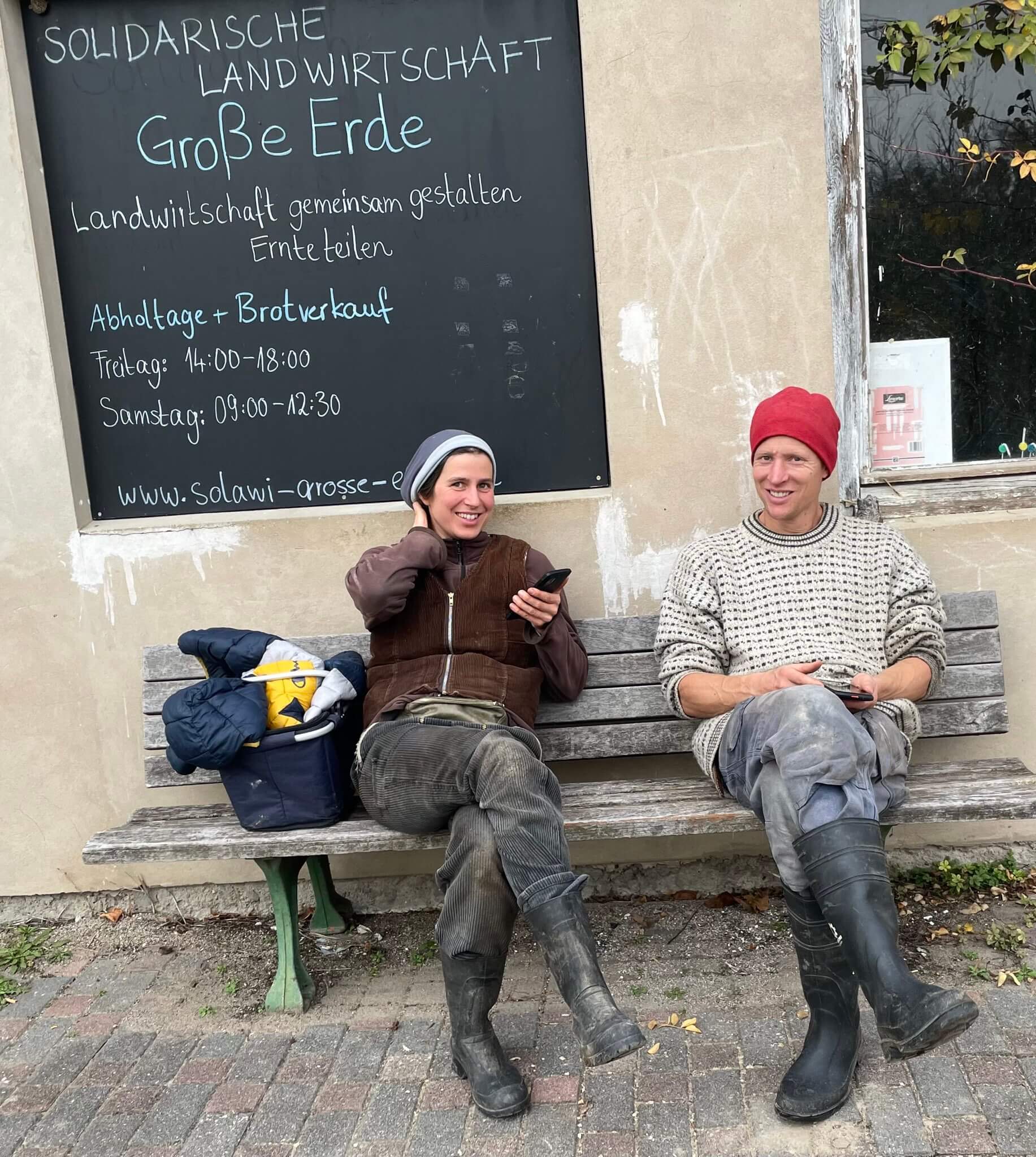 Willi und Marie-Luise Blickensdörfer betreiben seit über 14 Jahren Gemüsebau, davon sechs Jahre mit Vertrieb im eigenen Hofladen in Limburgerhof. Willi und Marie-Luise betreiben darüber hinaus eine Backstube, in der sie drei Mal die Woche Brot backen. Dieses steht Dienstags 16-18 Uhr am Kohlhof und Freitags von 14-18:00 Uhr, sowie Samstags von 9-12:30 Uhr auf der Großen Erde zum Verkauf bereit, oder kann wöchentlich über die Solawi bezogen werden. Willi und Marie-Luise bringen Erfahrung, Wissen, Arbeitskraft und Gerätschaften mit in das Projekt ein.